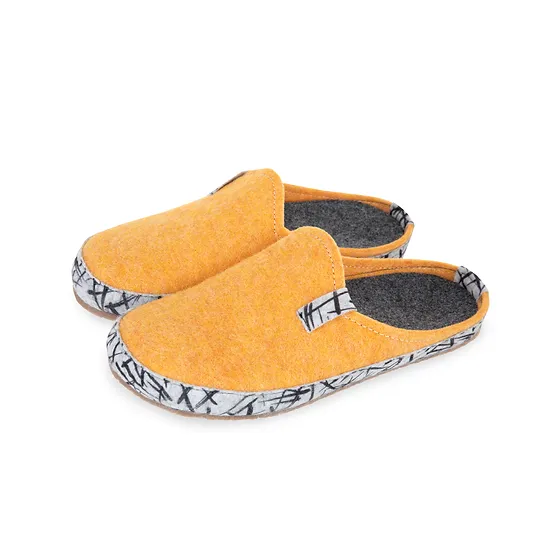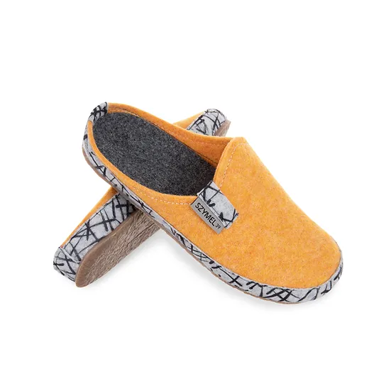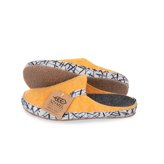 Μάλλινες Χειροποίητες Γυναικείες Παντόφλες Κίτρινες Πικάσο Szymel Yellow Picasso.