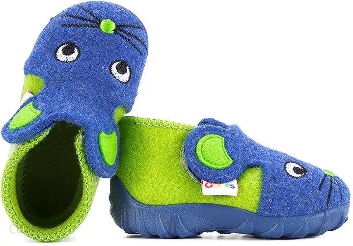 Μάλλινα Παιδικά παντοφλάκια ποντικάκι Μπλέ Πράσινα Gokids Mice Blue Green